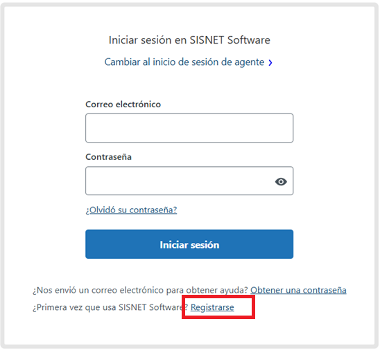 En la pantalla de Inicio de sesión, por favor ingrese por la opción "Registrase"