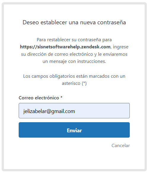 Ingrese su email con el ej. jelizabelar@gmail.com y de Enviar